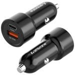 Ambrane 60W Fast Car Charger with Dual Output, 60W Total (30W USB + 30W Type C PD) Fast Charging Compatible with All Cars for iPhone & Android Smartphones and Tablets (ACC60, Black)
