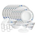Larah by Borosil Silk Series Blue Iris Opalware Dinner Set with Vision Glass | 35pcs for Family of 6 | Microwave & Dishwasher Safe | Bone-Ash Free | Crockery for Dining & Gifting | White, Plate & Bowl is available on Amazon at best discounted online price. Original price of this product is ₹ 4305. You can buy this product at discounted rate ₹ 1700.19.
